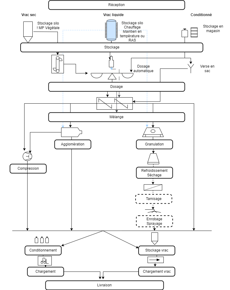 Certains outils peuvent également être concernés par la fabrication et/ou distribution d’aliments médicamenteux. Dans ce cas, ils appliqueront la réglementation spécifique en vigueur (décision du 12 février 2007 modifiée relative aux bonnes pratiques de fabrication et de distribution en gros des aliments médicamenteux [ 07-02]), notamment vis-à-vis de mesures de maîtrise spécifiques :