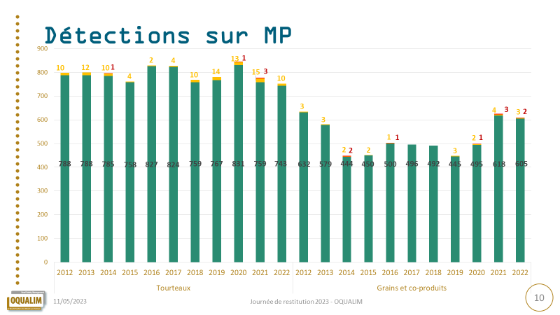 Les matrices qui apparaissent les plus contaminées sont les dérivés de graines (essentiellement tourteaux) de soja, de colza et de tournesol.