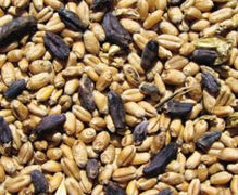Ce champignon est présent toute l’année dans le champ ou à la surface du sol, sous forme de sclérotes. Ces sclérotes contiennent plus de 40 alcaloïdes différents, toxiques pour toutes les espèces animales. Au printemps, le sclérote germe et libère des spores qui sont disséminées par le vent, l’eau, les insectes, etc.... Lorsqu’une spore atteint un épi, l’ergot prend la place du grain, se développe pour former un nouveau sclérote qui est visible à l’œil nu (l’enveloppe des sclérotes est de couleur brun-noir violacée) Comme toute mycotoxine, les alcaloïdes sont des molécules très stables dans le temps et ne peuvent être que très partiellement détruites par les procédés de transformation habituels. |