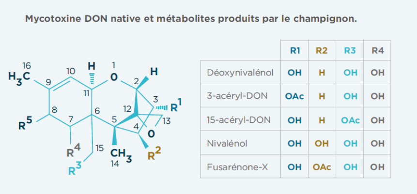 Le DON est l’un des trichothécènes les plus répandus dans le monde. Il est principalement produit par Fusarium graminearum et par Fusarium culmorum qui se développent surtout dans les pays tempérés.
